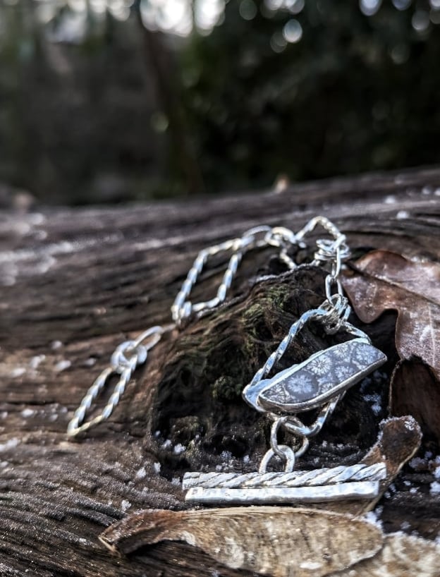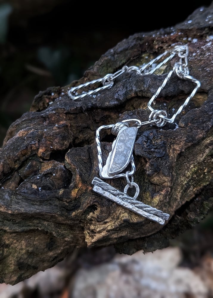 Grey Foasilised Coral, set on a recycled silver t-bar bracelet.